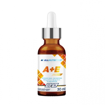 Allnutrition VIT A+E Drops to wyjątkowy suplement diety, który łączy dobroczynne właściwości witaminy A i E w jednej, wygodnej formie kropli. Każde opakowanie zawiera 150 porcji, co czyni go praktycznym rozwiązaniem na długi czas.