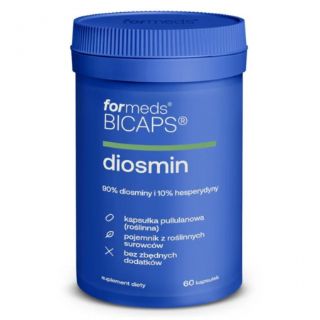 Bicaps Diosmin to suplement diety zawierający flawonoidy z czerwonej pomarańczy, hesperydynę (450 mg) i diosminę (50 mg).