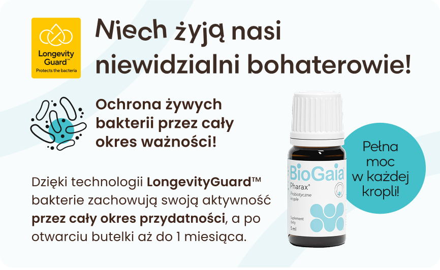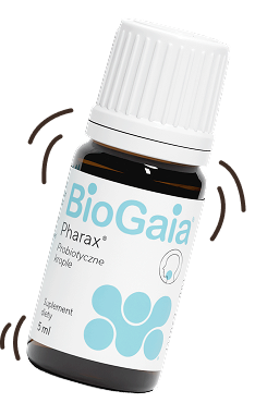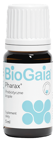 BioGaia Pharax krople to suplement diety uzupełniający naturalną mikroflorę w obrębie przewodu pokarmowego w tym jamy ustnej i gardła.