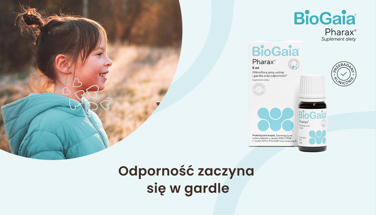 Suplement diety BioGaia Pharax uzupełnia mikrobiom jamy ustnej i gardła u dzieci powyżej 6 miesiąca życia i dorosłych.