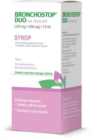 W razie konieczności lek BRONCHOSTOP Duo na kaszel można podawać rozcieńczony w wodzie lub ciepłej herbacie.