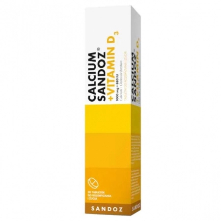 Calcium Sandoz + Vitamin D3 zawiera dwie substancje czynne – wapno z witaminą D3. Lek jest suplementem wapnia i witaminy D3.