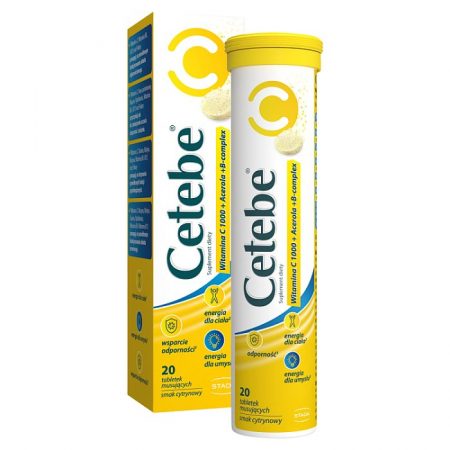OpisCetebe tabletki musujące to suplement diety zawierający witaminę C, acerolę i witaminy z grupy B. Produkt zapewnia wsparcie odporności oraz energię dla ciała umysłu.