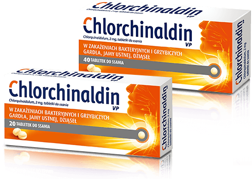 Chlorchinaldin VP, 2 mg, tabletki do ssania. Skład: 1 tabletka do ssania zawiera 2 mg chlorochinaldolu (Chlorquinaldolum). Postać farmaceutyczna: tabletki do ssania.