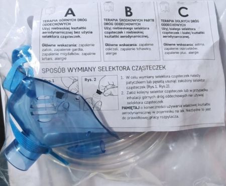 Oryginalny zestaw do nebulizacji dla dorosłych do inhalatorów firmy Diagnostic. W zestawie znajduje się nebulizator z regulacją wielkości cząsteczki MMAD. Należy przed pierwszym użyciem dokładnie przeczytać instrukcję obsługi, która znajduje się w opakowaniu. Nebulizator posiada 3 poziomy pracy, A,B oraz C. W zależności od modelu inhalatora Diagnostic wielkość cząstki we wszystkich 3 trybach będzie się różniła.