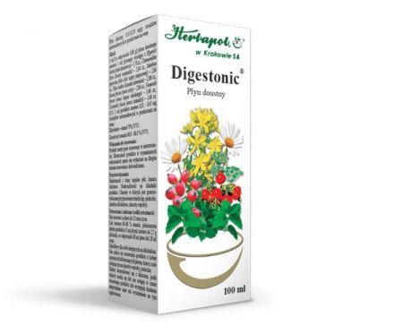1ml (co odpowiada 0,89g) płynu doustnego zawiera 1ml płynnego wyciągu z Hypericiherba (ziela dziurawca) - 5,70cz., Chamomillae flore (kwiat rumianku) - 2,84cz., Menthae piperitae folio (liść mięty pieprzowej) - 2,84cz., Rhei radice (korzeń rzewienia) - 2,86cz., Rosae fructu (owoc róży) - 2,84cz., Foeniculi fructu (owoc kopru włoskiego) - 1,46cz., Coriandri fructu (owoc kolendry) - 1,46cz. (1:5). 1ml produktu zawiera 0,31 - 0,45mg związków antranoidowych w przeliczeniu na reinę. Ekstrahent - etanol 70% (V/V). Zawartość etanolu 60,0 - 68,0% (V/V).