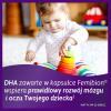 W okresie laktacji rośnie zapotrzebowanie organizmu matki na wiele składników, a to dlatego, że po części przekazuje je dziecku w postaci pokarmu. Jednym z tym składników, którego podaż powinna wzrosnąć w tym okresie jest kwas DHA. Mama, która uzupełnia swoją codzienną dietę w ten składnik przekazuje tą ważną substancję dziecku karmionemu piersią. Kwas DHA wspomaga prawidłowy rozwój mózgu oraz oczu u maluszka. Do uzyskania korzystnego działania należy spożywać dziennie 200mg kwasu DHA ponad porcję zalecaną do spożycia dla kwasów DHA i EPA (250mg). Suplement diety Femibion 3 Karmienie piersią pomaga uzupełnić dietę matki także w foliany, luteinę, witaminę A, wapń, żelazo oraz witaminy z grupy B. Żelazo pomaga redukować uczucie znużenia. Wapń wspiera prawidłowy rozwój kości.
