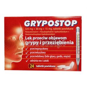 1 tabletka powlekana zawiera: 325 mg paracetamolu, 30 mg pseudoefedryny chlorowodorku i 15 mg dekstrometorfanu bromowodorku.