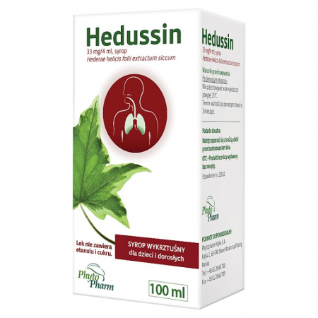 Każdy ml syropu zawiera 8,25 mg suchego wyciagu z liści bluszczu (Hedera helix L., folium) (4-8:1), Rozpuszczalnik ekstrakcyjny: etanol 30 % (m/m), Pozostałe składniki: Zawiera sorbitol (E420)