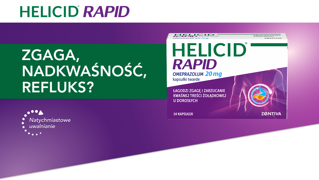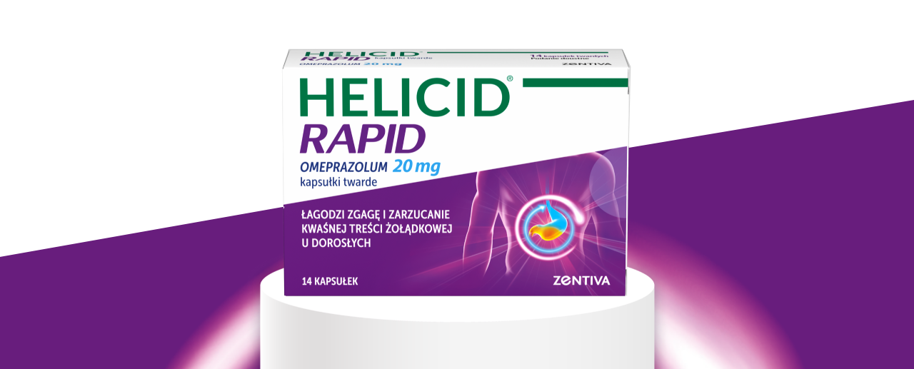 Helicid Rapid jest wskazany do stosowania u pacjentów dorosłych w leczeniu objawów refluksu (np. zgagi, zarzucania kwaśnej treści żołądkowej).