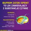 Ibuprom Zatoki Sprint to lek, który stosuje się w celu złagodzenia objawów związanych z przekrwieniem błony śluzowej nosa lub zatokowym bólem głowy, gorączką oraz bólem stawów i mięśni związanym z przeziębieniem i grypą.