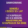Zalecana dawka to 1 lub 2 kapsułki co 4 do 6 godzin. Kapsułki należy połknąć w całości, popijając dużą szklanką wody. Należy przyjmować tyle kapsułek ile potrzeba, pamiętając o przerwie od 4 do 6 godzin pomiędzy zażywanymi dawkami.