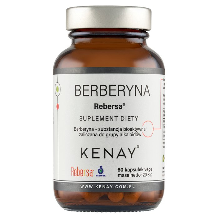 OpisKENAY Berberyna REBERSA® to suplement diety zawierający chlorowodorek berberyny z korzenia berberysu indyjskiego (Berberis aristata).