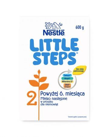 LITTLE STEPS® 2 jest mlekiem następnym w proszku przeznaczonym dla zdrowych niemowląt powyżej 6. miesiąca życia, jako płynny składnik diety podczas okresu odstawienia od piersi i po jego zakończeniu. Jest odpowiednie także do dokarmiania i stanowi tylko jeden z elementów zróżnicowanej diety niemowlęcia.
