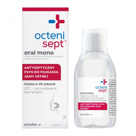 Użyć 10 ml leku w załączonym dozowniku. W przypadku stosowania leku Octenisept Oral Mono tuż po myciu zębów, należy dokładnie wypłukać jamę ustną wodą, a następnie lekiem Octenisept Oral Mono. Jamę ustną należy płukać przez 30 sekund po czym wypluć roztwór.