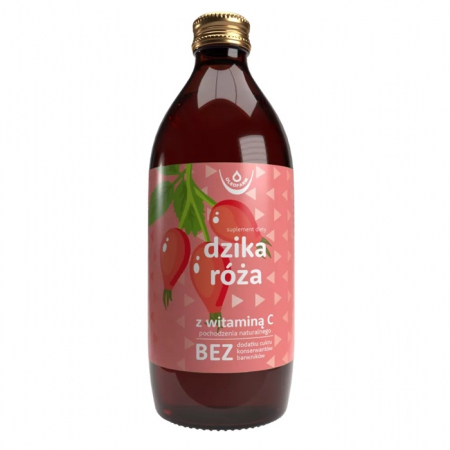 Dzika Róża sok z naturalną witaminą C to połączenie 99,92% soku z owoców dzikiej róży (Rosa canina) wyprodukowanego z zagęszczonego soku oraz ekstraktu z owoców dzikiej róży (Rosa canina) standaryzowany na zawartość witaminy C, dzięki czemu jeszcze lepiej wspiera Twoją odporność! Ponadto witamina C wspomaga pracę układu nerwowego, ochronę komórek przed stresem oksydacyjnym i prawidłową produkcję kolagenu. Przyczynia się także do zmniejszenia uczucia zmęczenia.