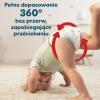 Pełne dopasowanie 360° pozwala pieluchomajtkom dostosować się do brzuszka dziecka oraz pomaga zapobiegać poluzowaniu i przeciekaniu.