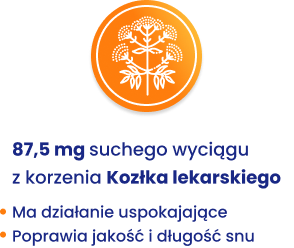 1 kapsułka twarda zawiera: 87,5 mg suchego wyciągu z korzenia kozłka lekarskiego, 7,5 mg suchego wyciągu z liści melisy lekarskiej, 17,5 mg suchego wyciągu z liści mięty pieprzowej.
