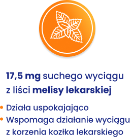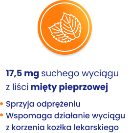 + 17,5 mg suchego wyciągu z liści mięty pieprzowej), kapsułki twarde (wyciąg suchy z korzenia kozłka lekarskiego (Valerianae extractum hydroalcoholicum siccum), liści melisy (Melissae folii extractum siccum) i liści mięty (Menthae piperitae folii extractum siccum).