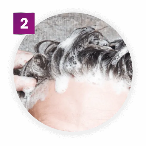 Nanieść i delikatnie wmasować preparat, aż do uzyskania piany.