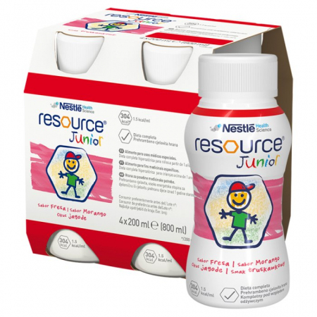 Resource Junior to kompletna pod względem odżywczym, wysokoenergetyczna dieta w płynie przeznaczona dla dzieci powyżej 1. roku życia. Żywność specjalnego przeznaczenia medycznego, do postępowania dietetycznego u dzieci powyżej 1. roku życia w stanach bądź w przypadku ryzyka niedożywienia związanego z chorobą, np. w: