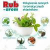 100 g maści Rub-Arom zawiera: tymol (Thymolum) 0,25 g, lewomentol (Levomentholum) 2,75 g, kamfora racemiczna (Camphora racemica) 5,00 g, olejek cedrowy (Cedri oleum) 0,75 g, olejek eukaliptusowy