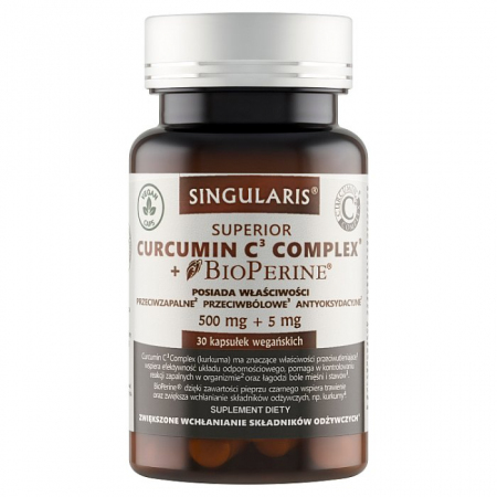 OpisSingularis Curcumin C3 Complex + Bioperine to suplementy diety przeznaczony dla osób dorosłych i młodzieży powyżej 12 roku życia.