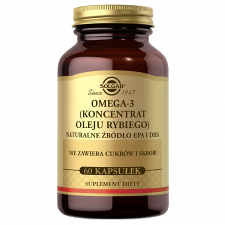 Solgar Omega 3 stanowi skoncentrowane źródło oleju rybiego o gwarantowanej standaryzowanej zawartości Nienasyconych Kwasów Tłuszczowych Omega 3 (EPA i DHA). Koncentrat oleju rybiego SOLGAR uzyskany jest z sardeli i sardynek. Dostarcza w jednej kapsułce porcję kwasów Omega 3 równą zalecanemu dziennemu spożyciu.
