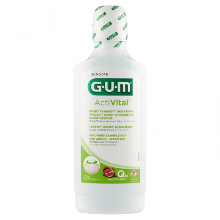 W celu optymalnego wzmocnienia i ochrony dziąseł oraz zębów używaj połączenia pasty oraz płukanki Gum ActiVital codziennie rano oraz wieczorem, lub po każdym posiłku.