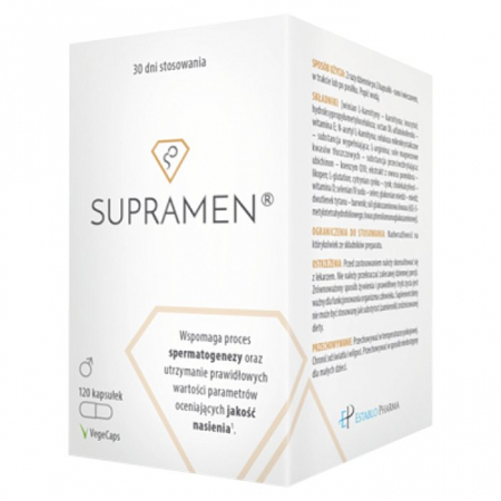 SUPRAMEN® to suplement diety, którego składniki korzystnie wpływają na stan zdrowia reprodukcyjnego mężczyzn, zwiększając szanse na zapłodnienie. Zawiera opracowany z udziałem specjalistów kompleks aktywnych biologicznie substancji z mio-inozytolem.