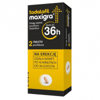 Tadalafil Maxigra®. Skład i postać: Tabletki powlekane. Każda tabletka zawiera 10 mg tadalafilu. Substancja pomocnicza o znanym działaniu: laktoza jednowodna. Każda tabletka powlekana zawiera 153,8 mg laktozy jednowodnej. Wskazania: Leczenie zaburzeń erekcji u dorosłych mężczyzn. Aby tadalafil działał skutecznie, konieczna jest stymulacja seksualna. Produkt Tadalafil Maxigra nie jest przeznaczony do stosowania u kobiet. Podmiot odpowiedzialny: Zakłady Farmaceutyczne Polpharma S.A. Pozwolenie na dopuszczenie do obrotu nr 23996 wydane przez MZ. Lek wydawany bez recepty. ChPL: 2022.03.31.