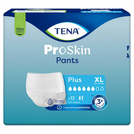 Tena Pants Proskin Plus XL to majtki chłonne oferujące do 100% zabezpieczenia w średnim i ciężkim stopniu nietrzymania moczu, zapewniając 2 razy szybszą chłonność oraz długotrwałe uczucie suchości w ciągu dnia i nocą. Jednorazowe majtki na nietrzymanie moczu, stworzone z myślą o kobietach i mężczyznach preferujących aktywny styl życia na co dzień.