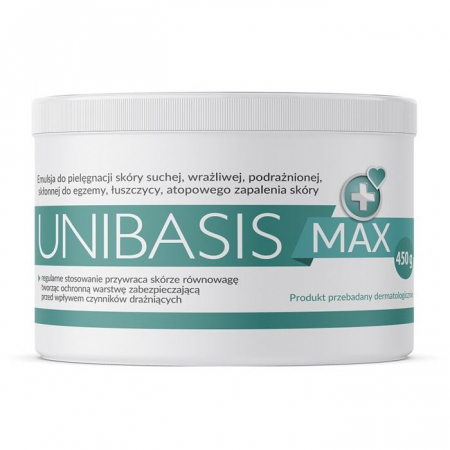 Unibasis Max to emulsja przeznaczona do skóry suchej, wrażliwej, podrażnionej, skłonnej do egzemy, łuszczycy, atopowego zapalenia skóry. Emulsja zapewnia ochronę zarówno latem jak i zimą.