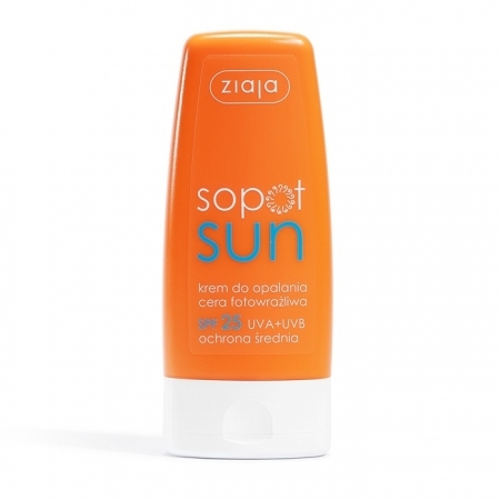 Krem do opalania dla cery fotowrażliwej. Zapewnia średnią ochronę przed słońcem (SPF 25 UVA+UVB).