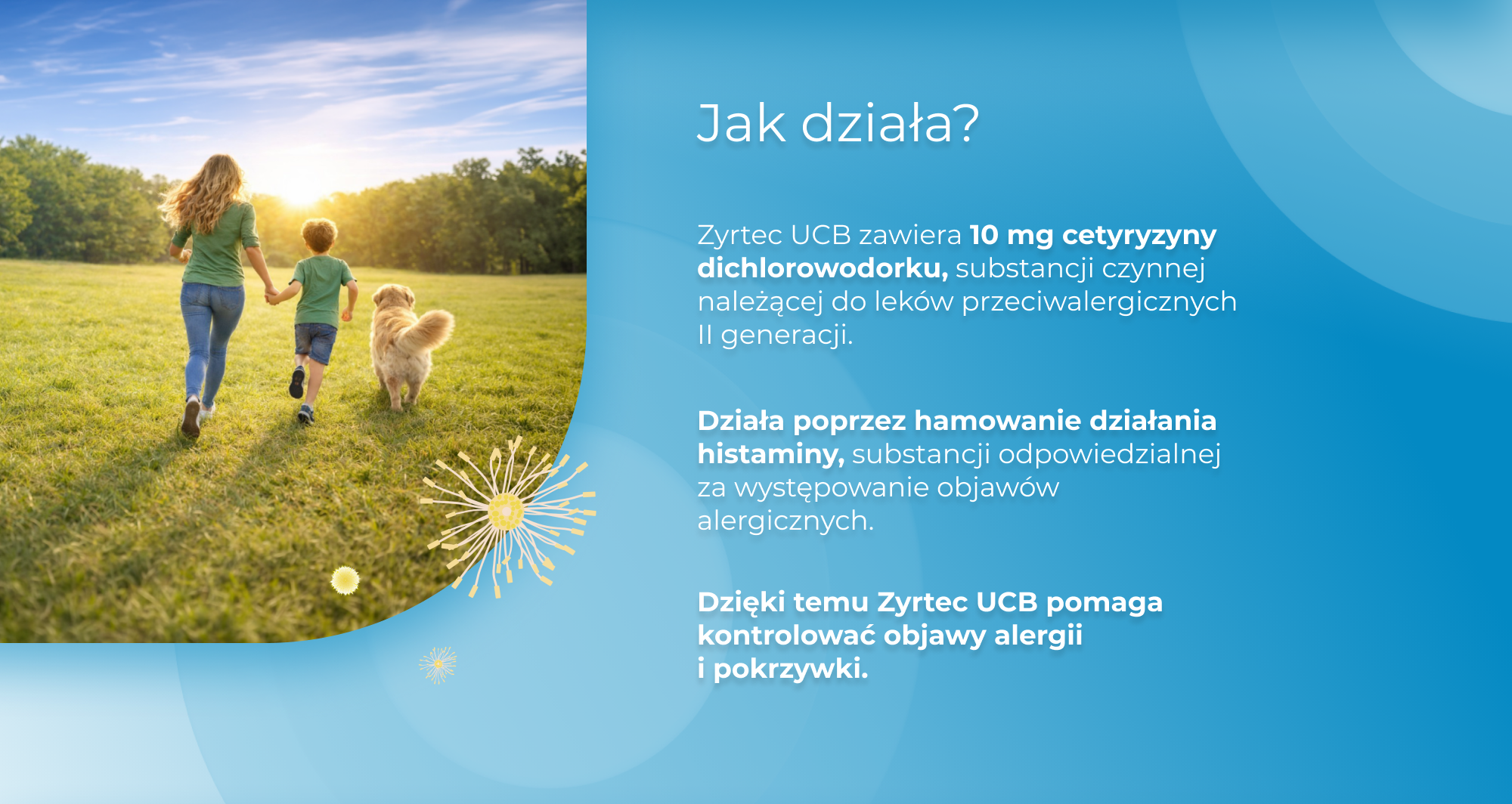 Substancją czynną leku Zyrtec UCB jest cetyryzyny dichlorowodorek. Zyrtec UCB jest lekiem działającym przeciwalergicznie.