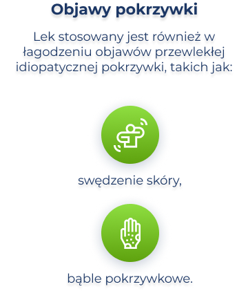 alergicznym zapaleniem błony śluzowej nosa; łagodzenie objawów przewlekłej idiopatycznej pokrzywki.