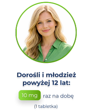 Dorośli i młodzież w wieku powyżej 12 lat: 10 mg (1 tabletka) raz na dobę.