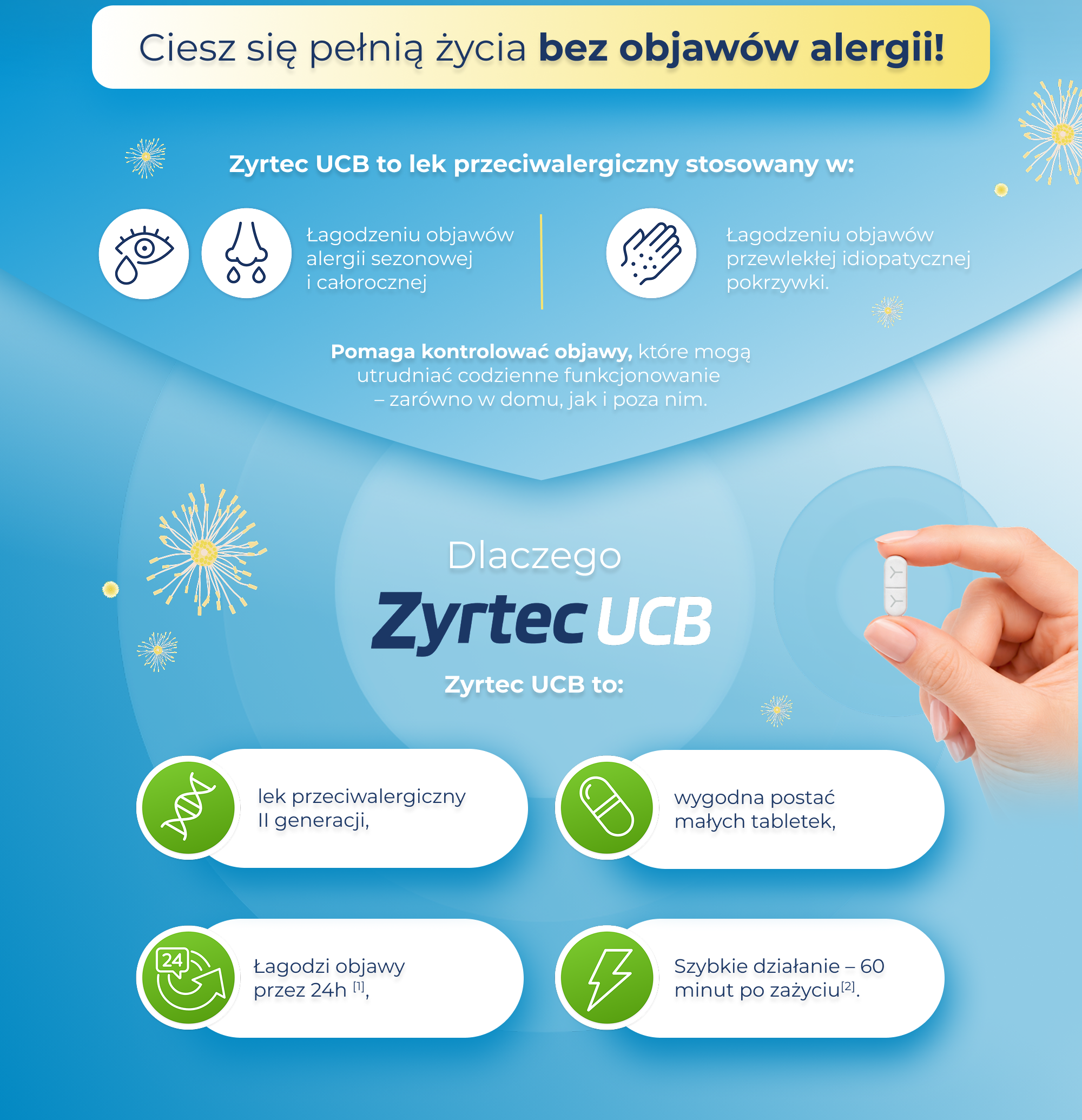 Wskazania do stosowania: Zyrtec UCB, 10 mg, tabletki powlekane jest wskazany u dorosłych i dzieci w wieku 6 lat
